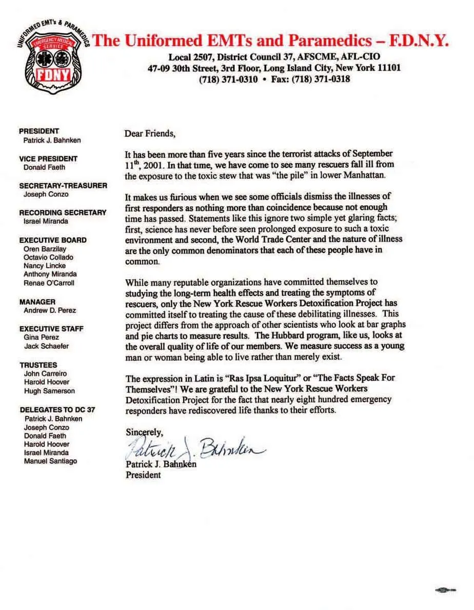 Former President, F.D.N.Y. Uniformed EMT's, Paramedics and Inspectors, Patrick Bahnken